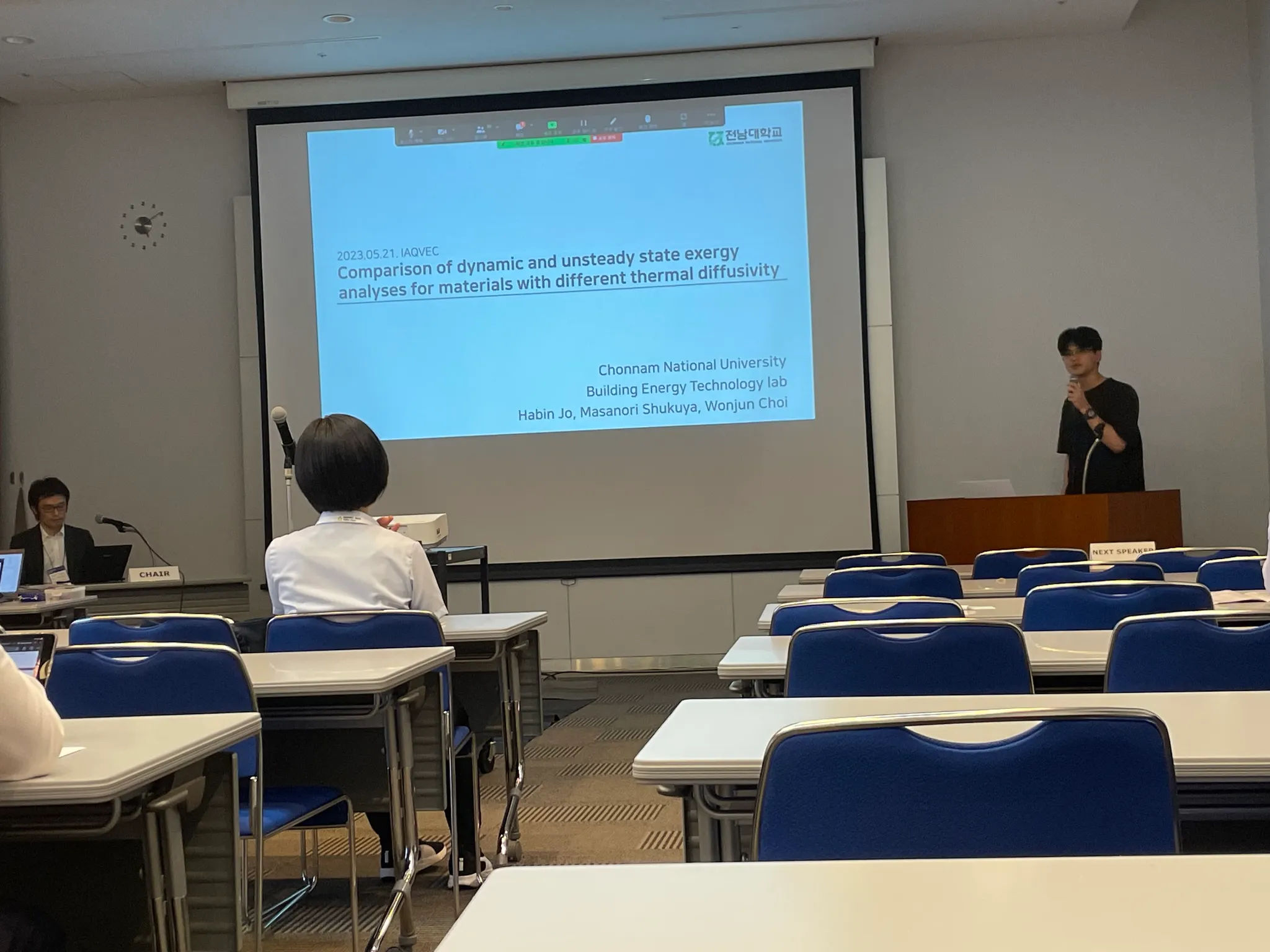 Euntak and Habin had an opportunity to present their academic papers on building energy usage and techniques for the built environment at Tokyo Big Sight during the period of May 20th to 23rd, 2023. This international event offered a diverse range of building physics-related topics, providing a unique platform for knowledge exchange and constructive discussions beyond traditional academic conferences. This presentation opened up new perspectives and insights related to their area of expertise.